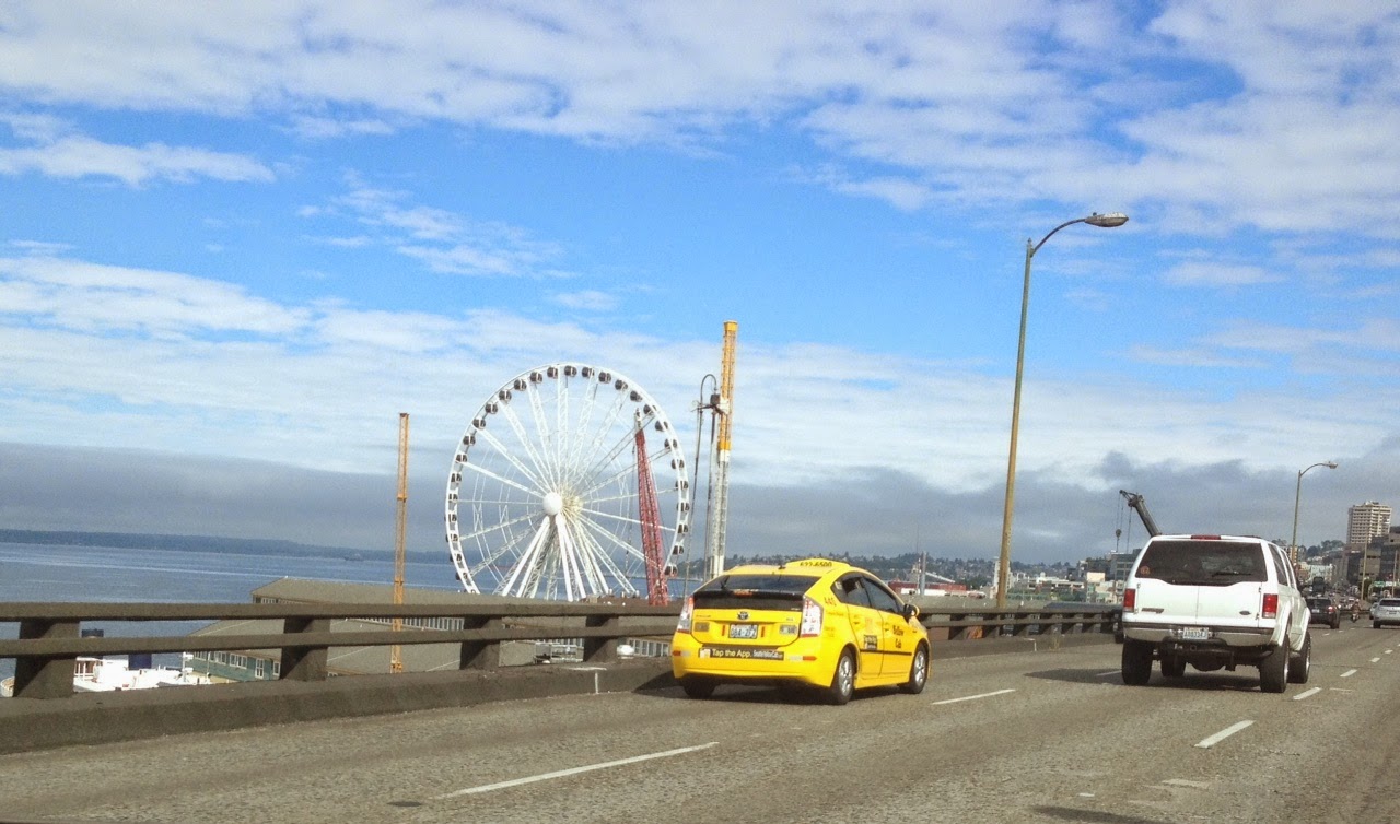 The colorful blue, red and white Victoria Clipper zips past us taking her fares south.